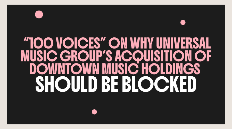 Independent music leaders today published 100 Voices, a campaign with a clear message – Universal Music Group’s proposed acquisition of Downtown Music Holdings should be blocked.