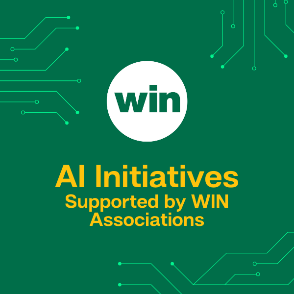 A list of developments in the field of AI that are supported by WIN associations, including campaigns and positions from various territories around the world.